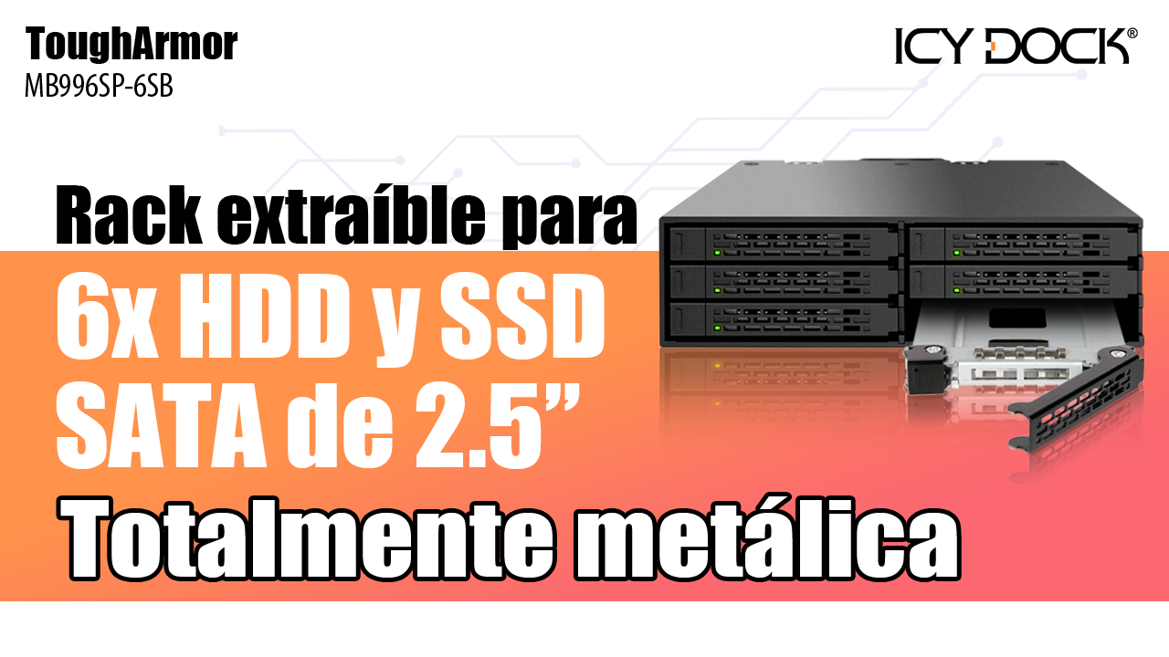 | • | Inicio 6 discos de 2,5" SATA, mecánicos o SSD de 7 a 9,5mm de espesor para un rendimiento | ||