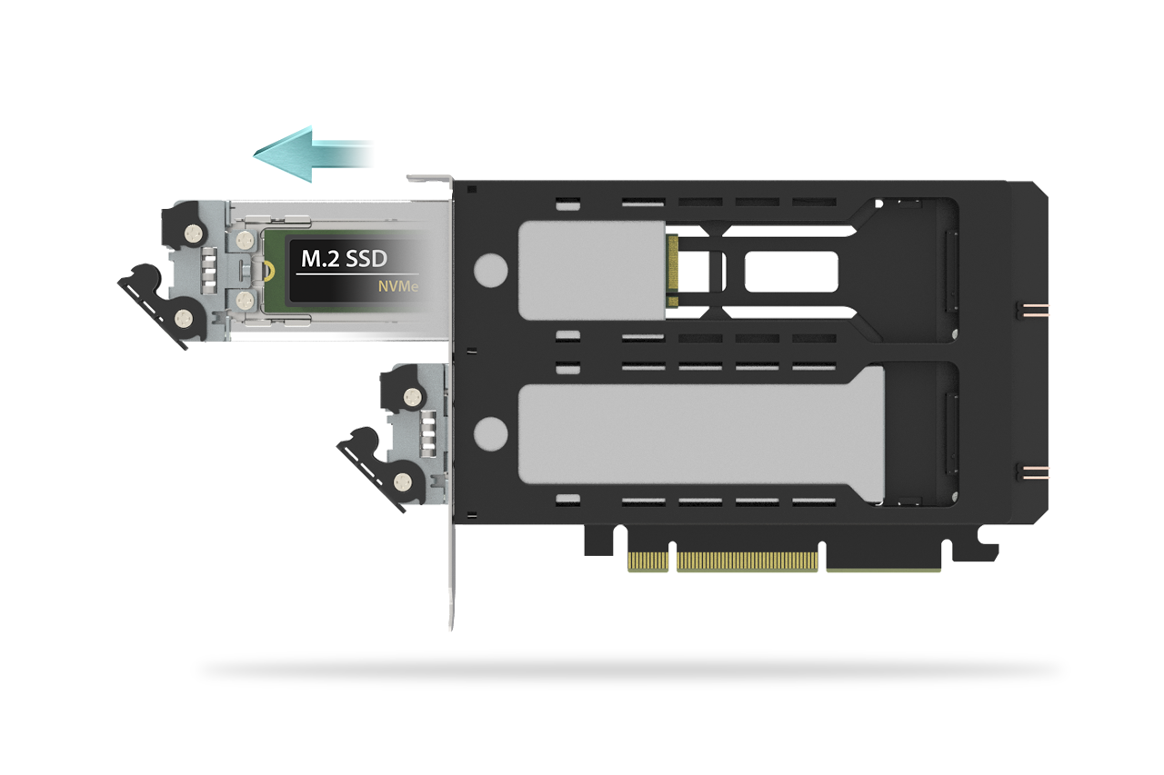 | Bahía de la unidad: | 1 x ranura de expansión PCIe 5.0 x8 o x16 (la placa base requiere ranuras PCIe x8 bifurcadas en x4/x4, o ranuras PCIe x16 bifurcadas en x4/x4/x4/x4) |