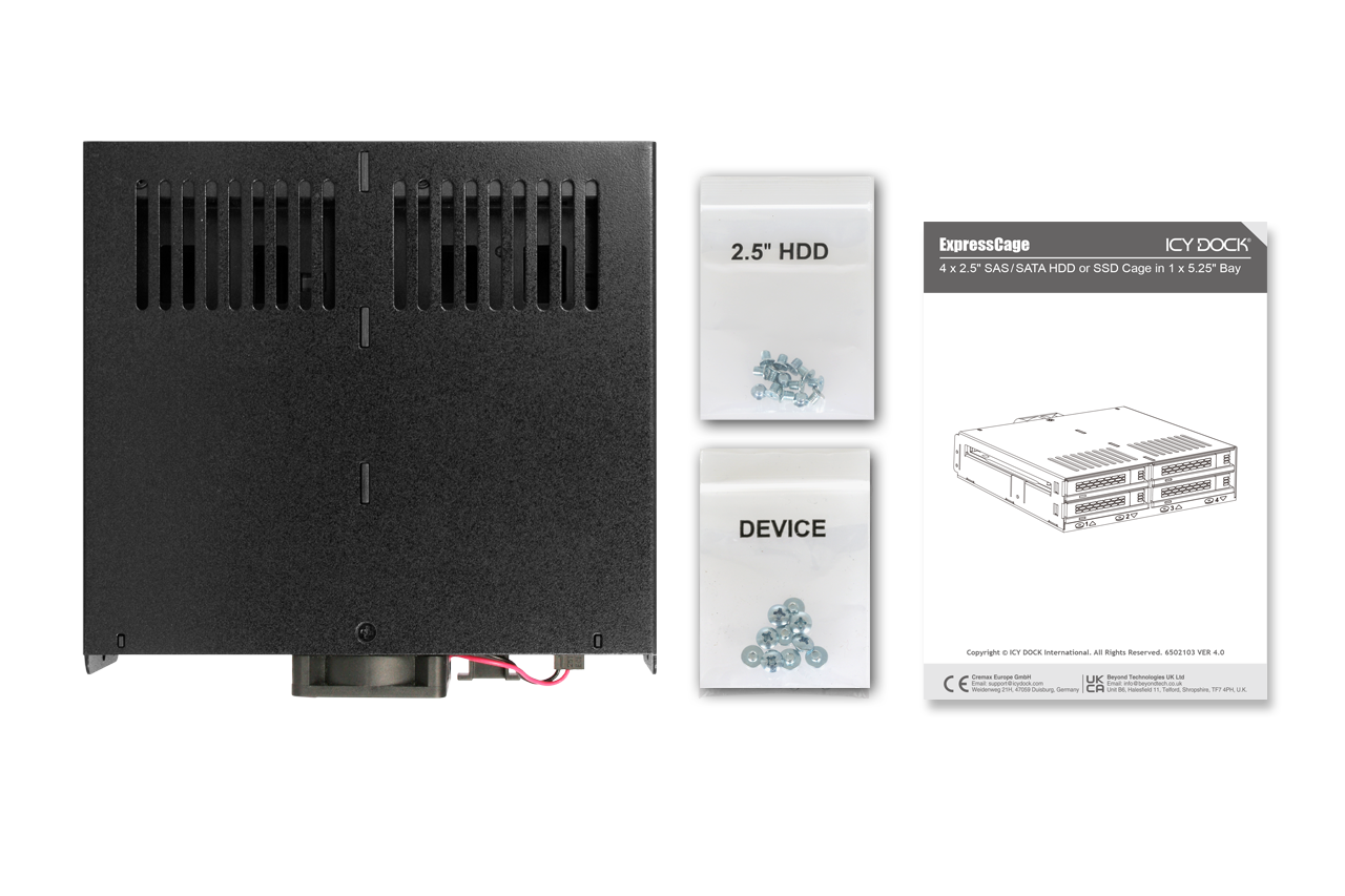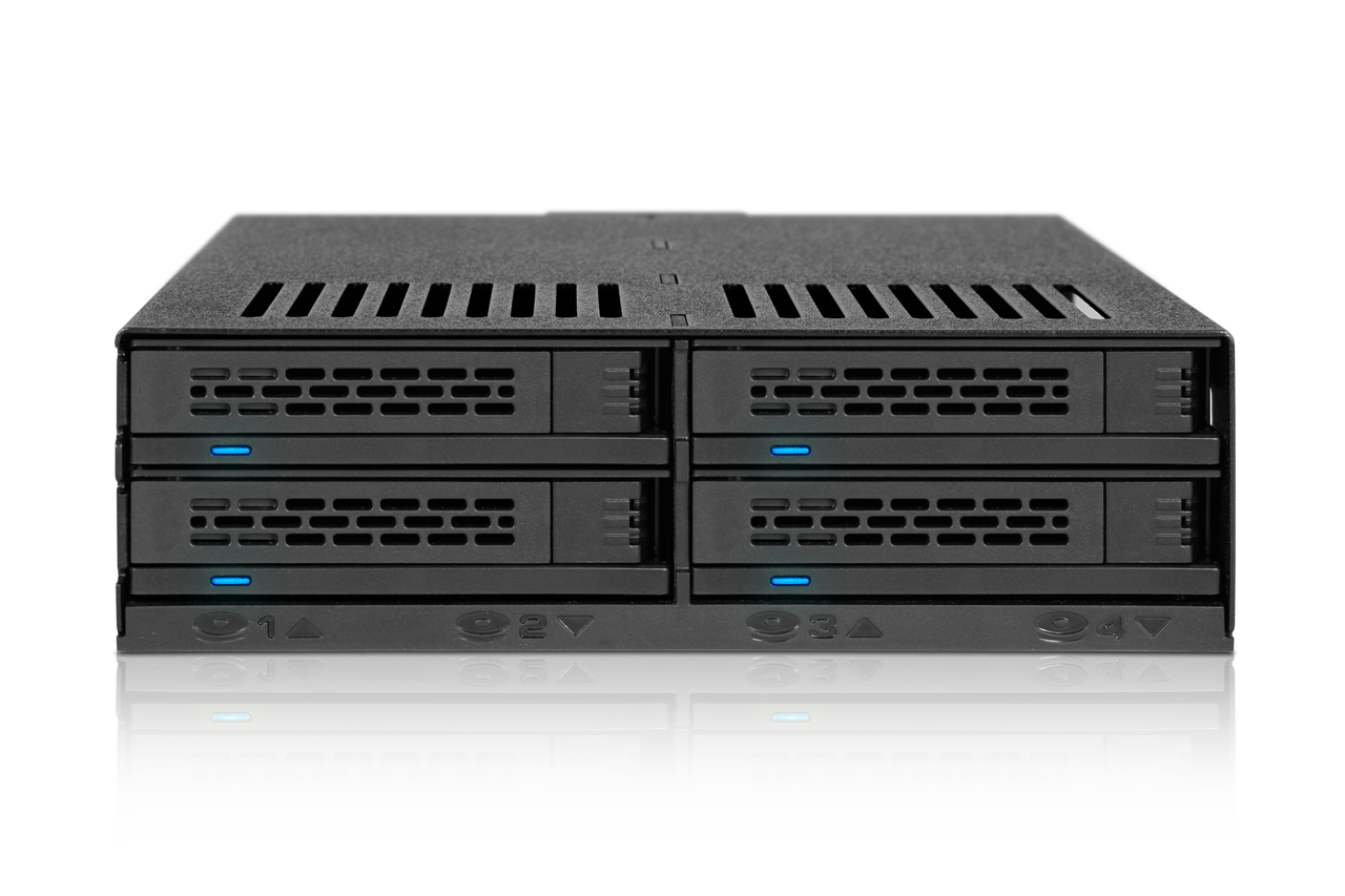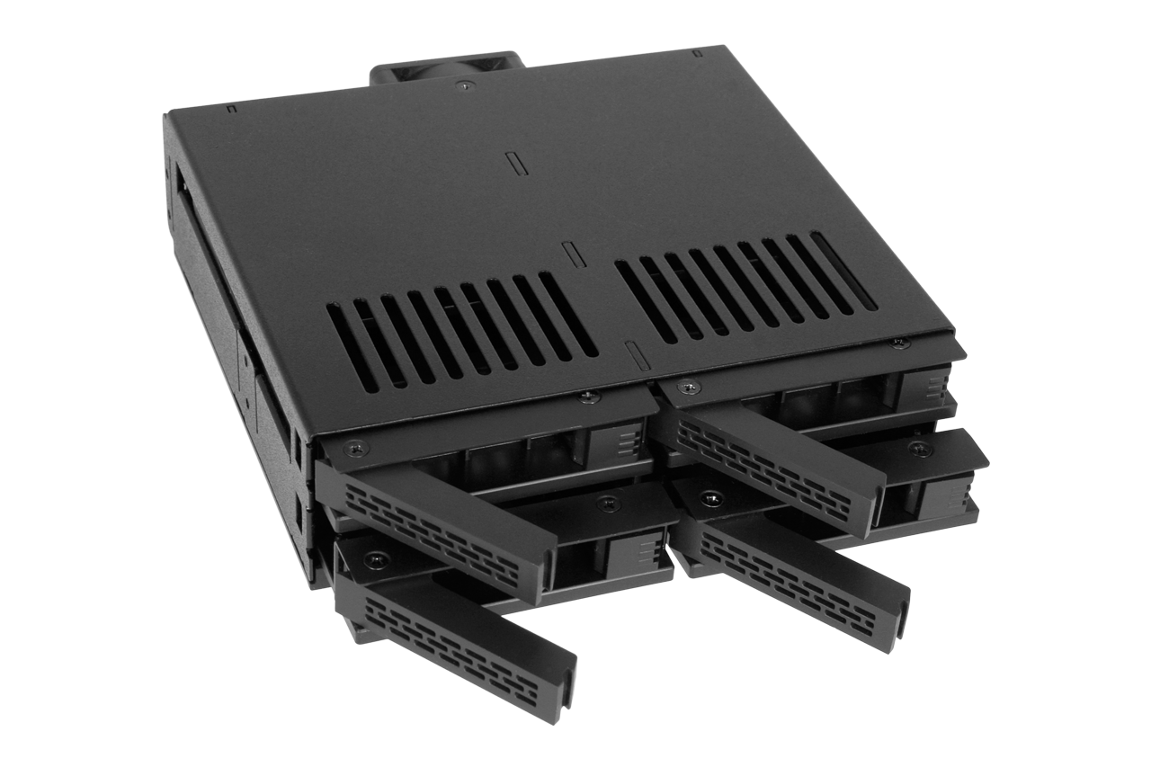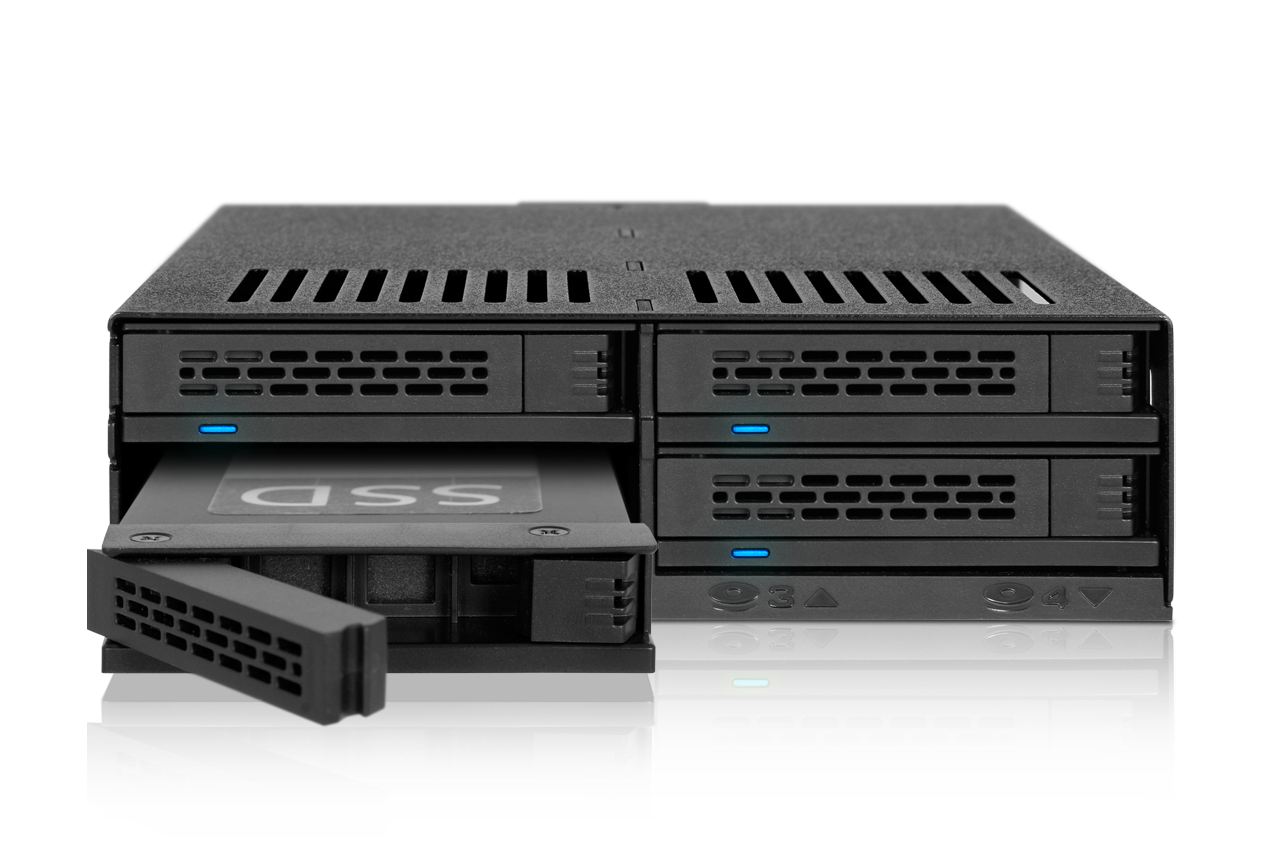 | • | Admite hasta 4 x 2.5" HDD o SSD SATA/SAS en una sola bahía de 5.25" |