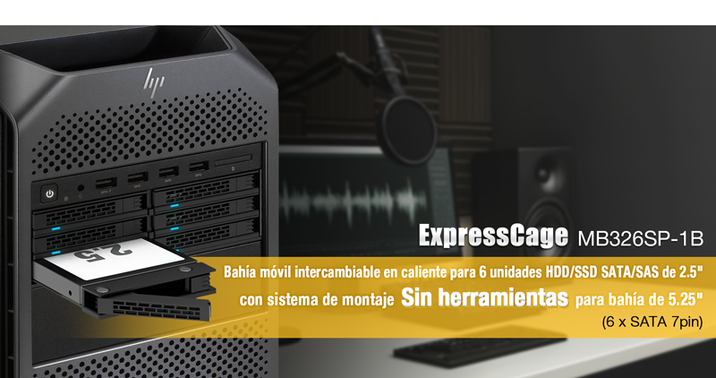 Nota: El ExpressCage MB326SP-1B no es compatible con HDD/SSD SAS, los cuales también requieren alimentación de 12V para funcionar.