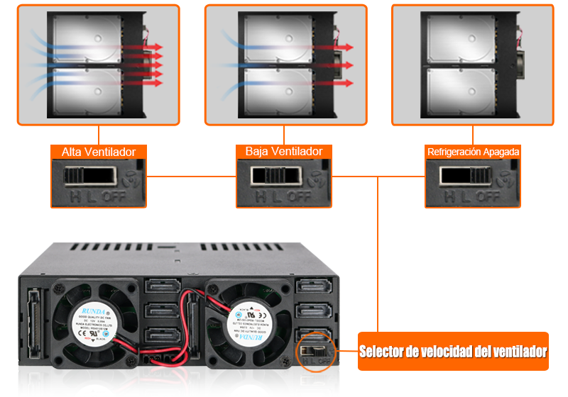 R: El ventilador de refrigeración que utilizamos ha sido completamente probado con el gabinete para unidades a fin de garantizar que funcione correctamente y sea compatible con el control de velocidad del ventilador (para modelos seleccionados). Por lo tanto, sugerimos a nuestros clientes mantener el ventilador original para obtener el mejor resultado. Sin embargo, entendemos que el ventilador de serie puede no ser adecuado para todas las aplicaciones, por lo que hemos decidido mantener la garantía cuando se utilice un ventilador de terceros. No obstante, la garantía puede anularse si el ventilador de terceros causa daños eléctricos al dispositivo.