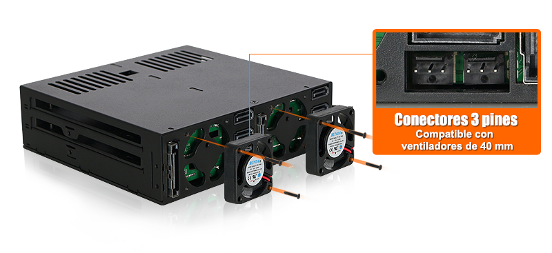 | • | Dos ventiladores de 40mm actualizables por el usuario para una refrigeración efectiva de las unidades |