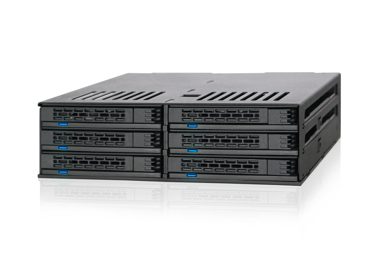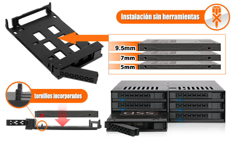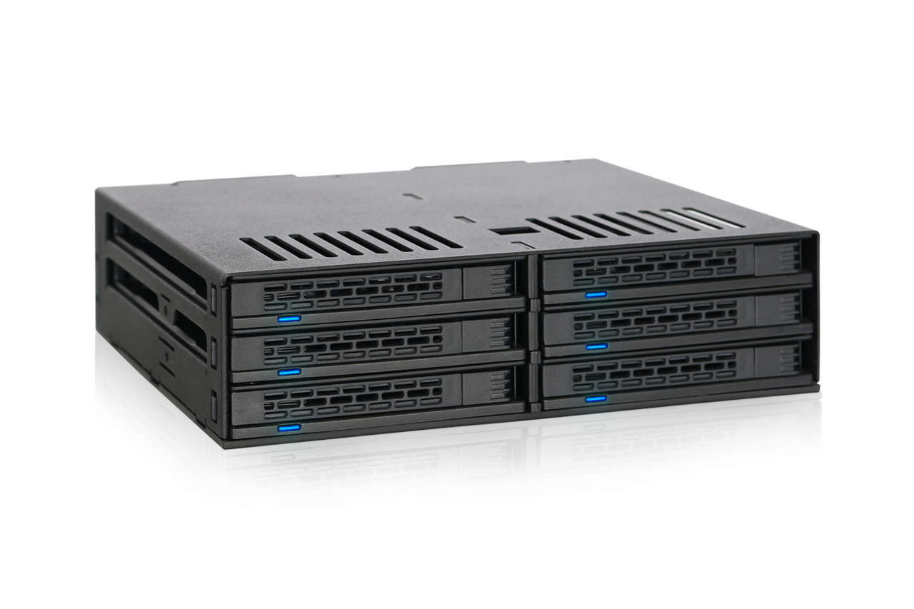 | • | Ideal para usuarios avanzados, ensambladores de sistemas y aplicaciones que requieren soluciones de almacenamiento intercambiables en caliente de 6 bahías de 2.5" que ahorran espacio |