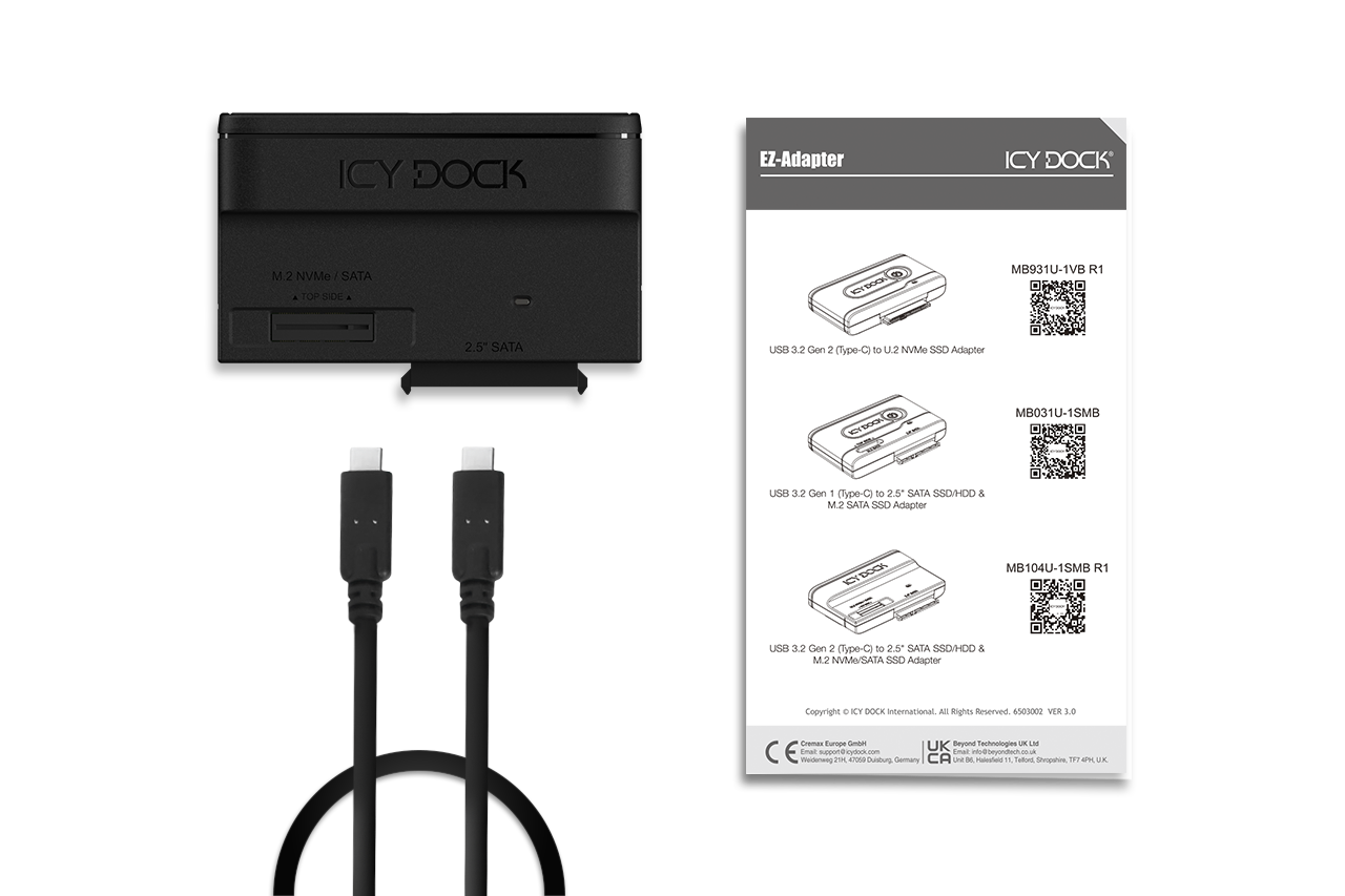 Además, este adaptador permite el acceso directo a bandejas de SSD de varias soluciones extraíbles de ICY DOCK, incluyendo: MB840M2P-B, MB840M5P-B, MB842MP-B, MB842M5P-B, MB852M2PO-B, MB872MP-B, MB873MP-B. Con el MB104U-1SMB R1, los usuarios pueden leer instantáneamente los datos de estos módulos SSD con bandeja desde cualquier computadora o estación de trabajo equipada con USB, sin reinstalar ni retirar el SSD.