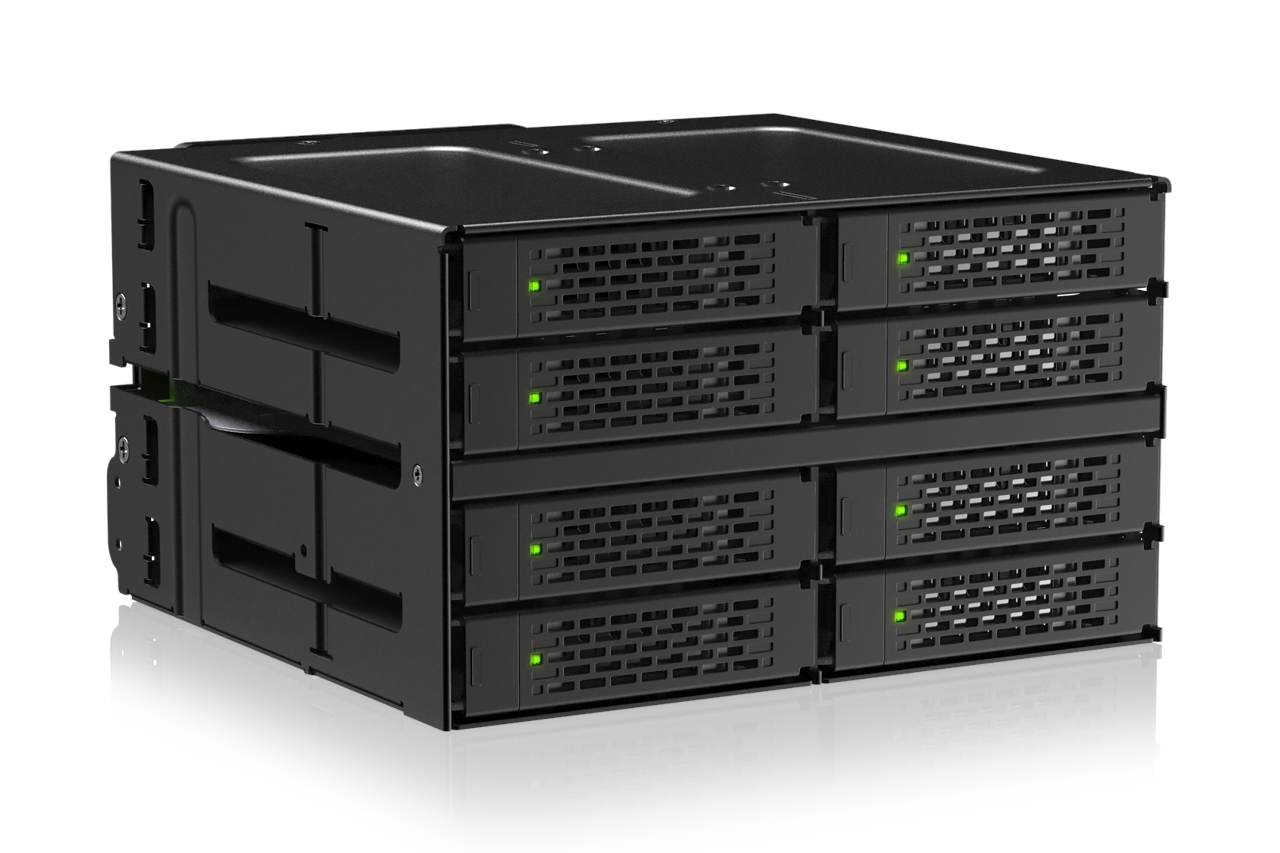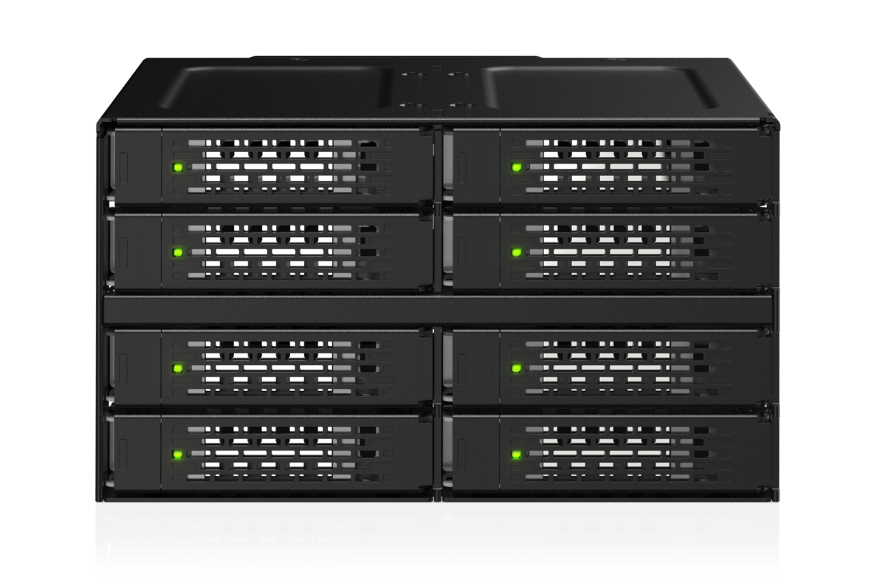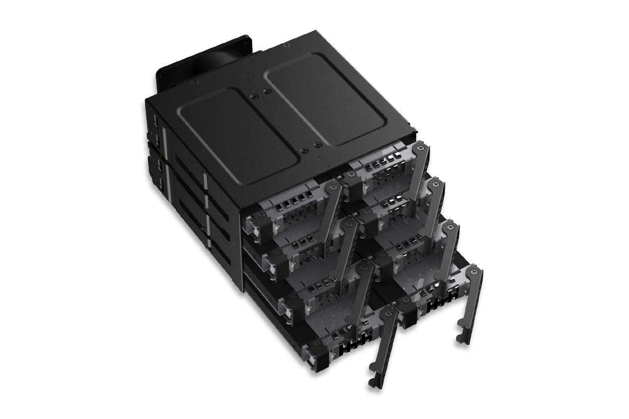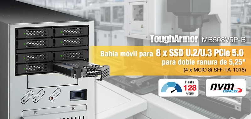 | • | Compatible con 8 × SSDs NVMe U.2/U.3 de 15 mm en 2 bahías de unidad de 5.25" |