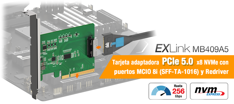 | Velocidad de transferencia: | PCIe 5.0 x8 hasta 256Gbps |