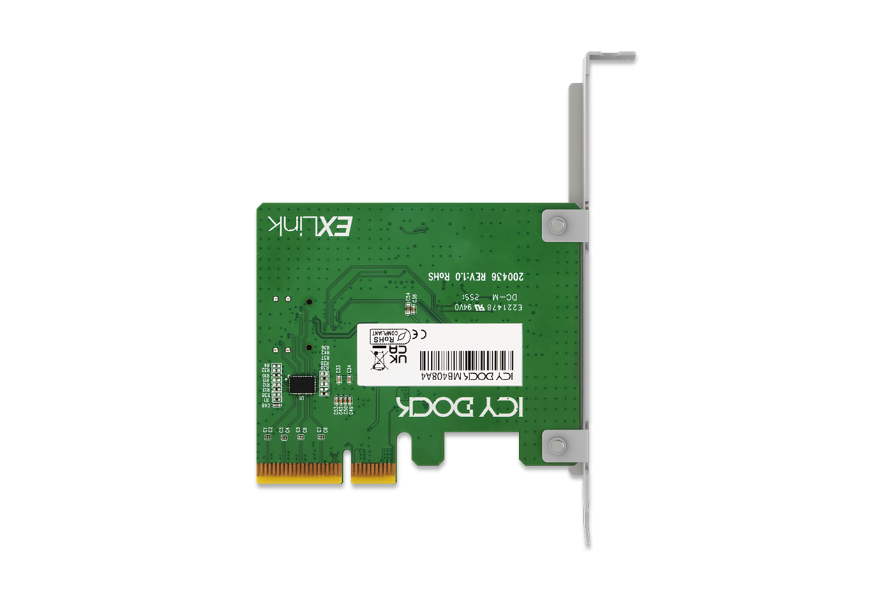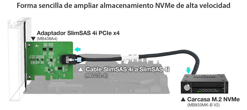 | Interfaz del endpoint: | 1 x SlimSAS 4i (SFF-8654), disposición de pines definida por SFF-9402 Rev 1.1 (Compatible con tarjetas HBA/RAID tri-modo) |