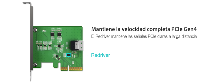 | • | Redriver PCIe Gen4 integrado para ampliar el alcance de la señal |