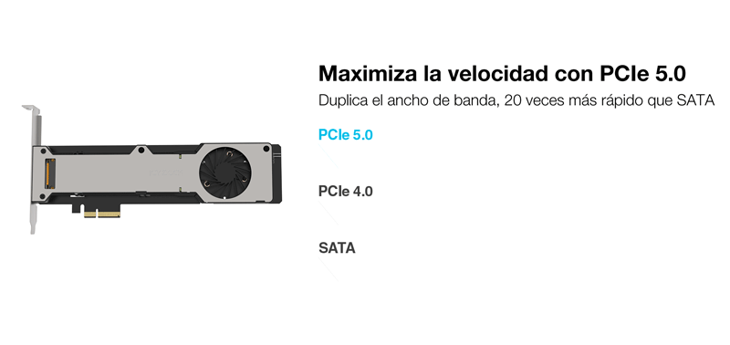 | • | Interfaz PCIe 5.0 x4, hasta 128Gbps por SSD |