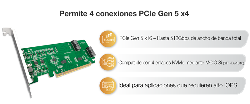 | Velocidad de transferencia: | PCIe 5.0 x16 hasta 512Gbps |
