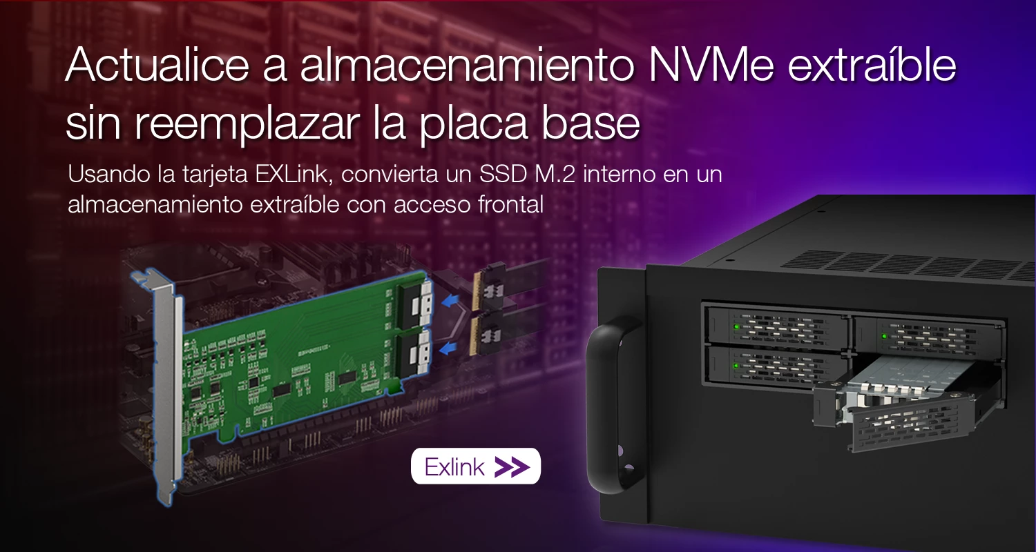 Muchos servidores y estaciones de trabajo que se utilizan actualmente no se diseñaron inicialmente pensando en un almacenamiento NVMe accesible desde la parte frontal. Aunque pueden disponer de ranuras M.2 internas, a menudo carecen de facilidad de mantenimiento, capacidad de conexión en caliente o una arquitectura escalable en la bahía frontal.