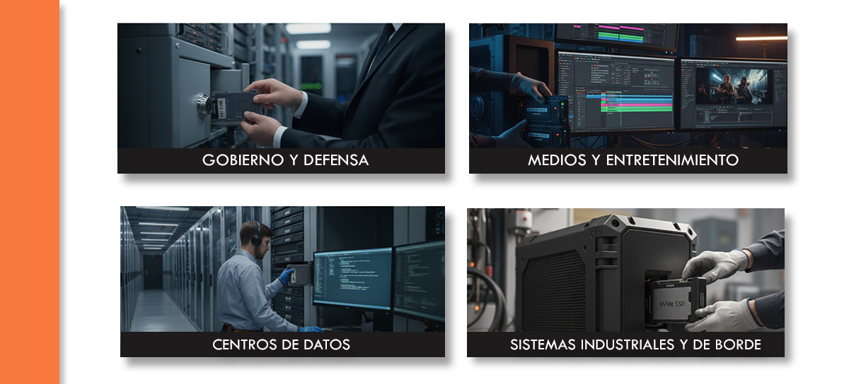Aunque algunos usuarios simplemente necesitan retirar las unidades diariamente por conveniencia, las carcasas NVMe extraíbles se utilizan en muchas industrias donde el rendimiento, la seguridad y la practicidad se cruzan: